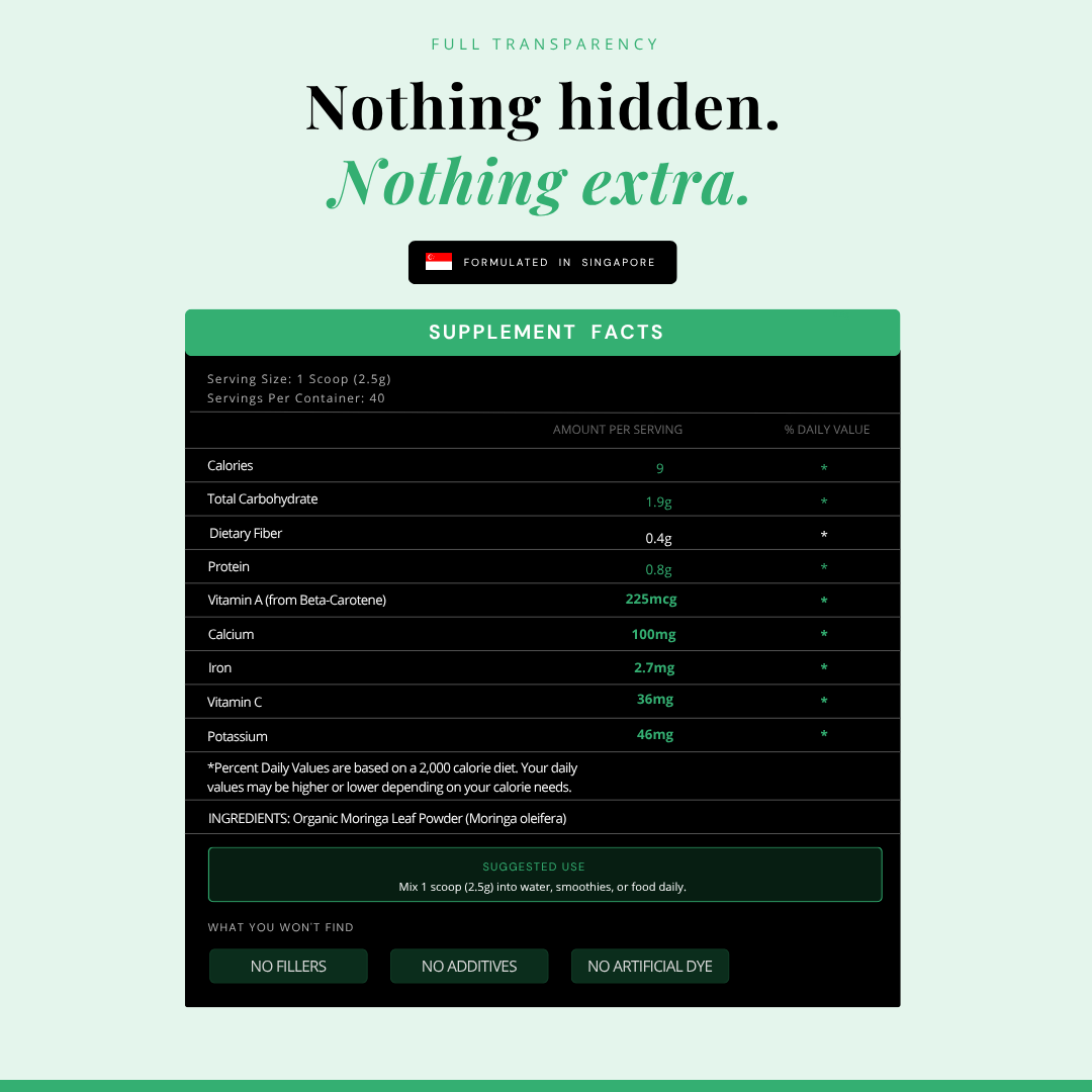 - 100% Organic & Pure: Made with premium-grade moringa leaves, free from pesticides, additives, and preservatives.